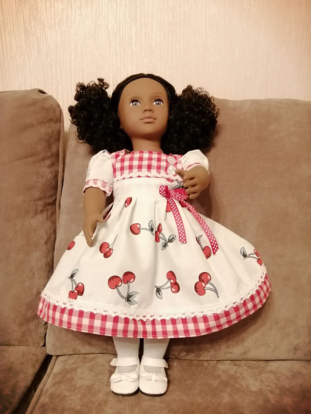This is a Bespoke Hand Made outfit for a 15" doll such as 'Our Generation'. Material is subject to availability. If no longer available a suitable substitute will be used. Doll not included. To Order please quote ref: 73556