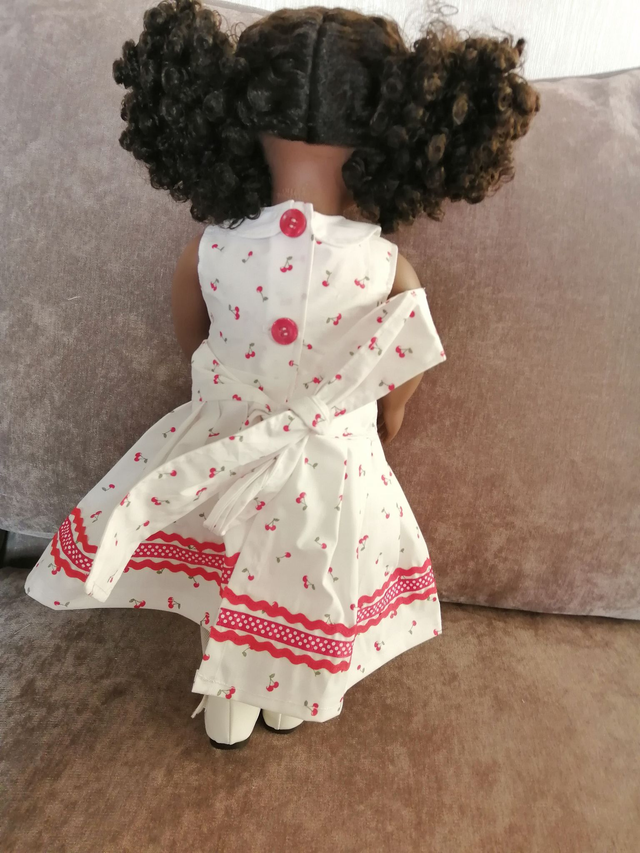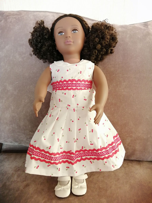 This is a Bespoke Hand Made outfit for a 15" doll such as 'Our Generation'. Material is subject to availability. If no longer available a suitable substitute will be used. Doll not included. To Order please quote ref: 65544