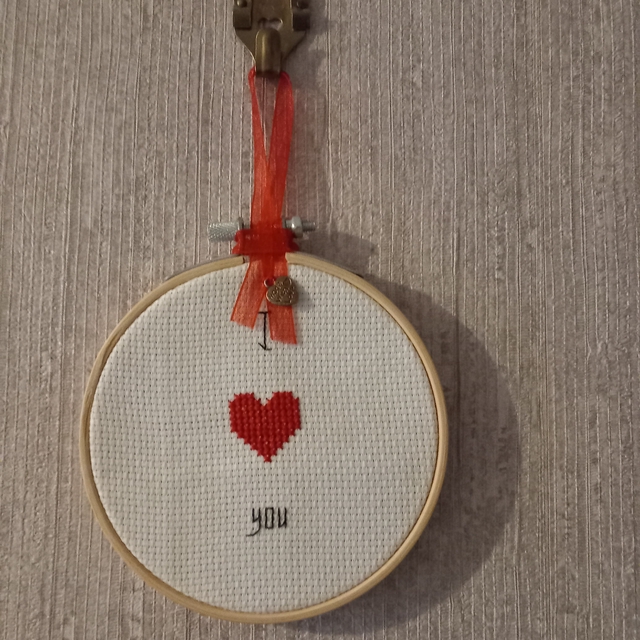 this is a hand embroidered cross stitch hoop. Item measurement, circumference, 4". Last order date to guarantee delivery for Valentines Day 10th February.